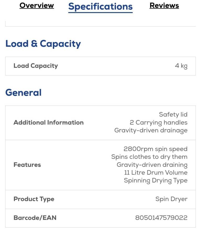 This spin dryer from Indesit takes 4kg of clothes, has a 2800rpm spin speed, and is top loading for added convenience. It doesn't require any plumbing either - simply place a container under the spout to drain the water. Easy. With gravity-driven draining on the NISDG428, drying your clothes has never been so simple.