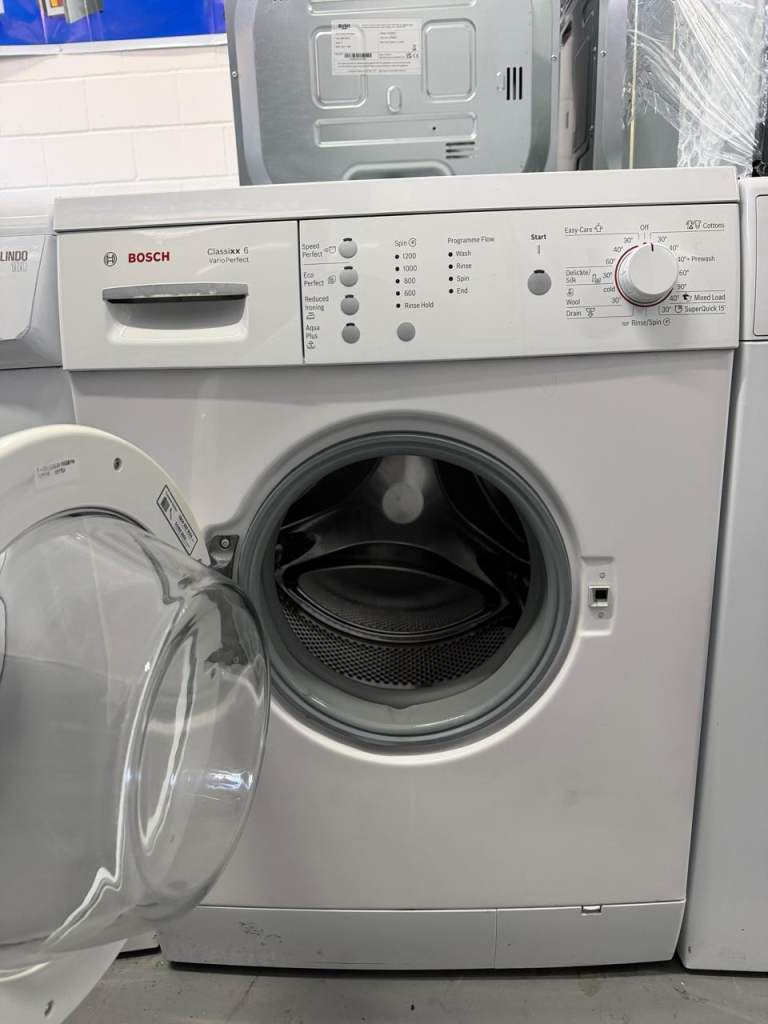 Bosch 6 kg 1200 RPM Washing Machine in excellent working condition and comes with a warranty. Delivery available across London every day of the week.