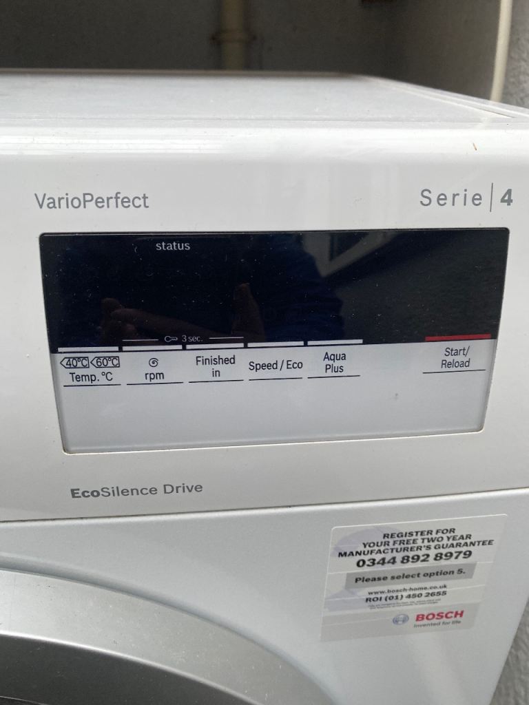 This is a great washing machine which lives up to the Bosch reputation for excellence. It has lots of features which I must confess I don’t use as I’ve been really happy with it on three or four main choices. I’m only selling it because I have a new kitchen and have gone for the integrated version. It’s a bargain because I’d like it gone so I can get on with the next phase of building works