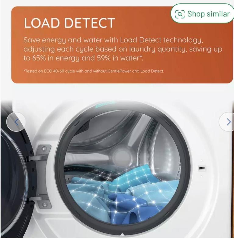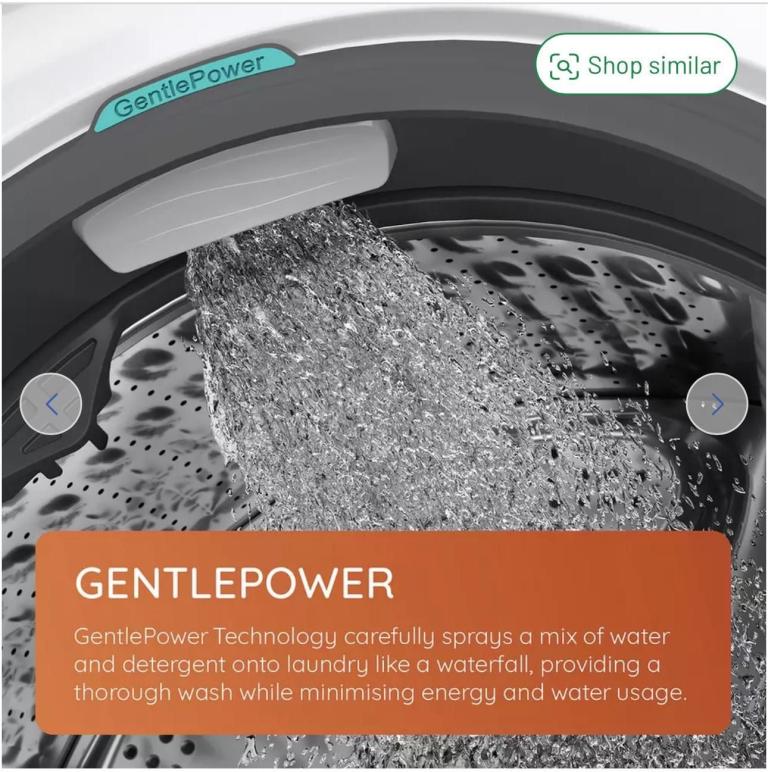 Gentle Power Technology carefully sprays a mix of water and detergent onto your laundry like a waterfall, providing a thorough wash while minimising energy and water usage. This keeps your laundry feeling great and saves you money.
