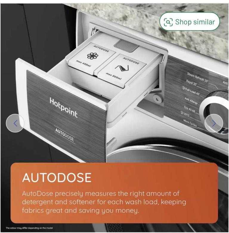 AutoDose - Never wonder how much detergent is needed again. AutoDose precisely detects the right amount of detergent and softener needed dependent on the wash load, so your fabrics stay looking and feeling great, while saving you money.