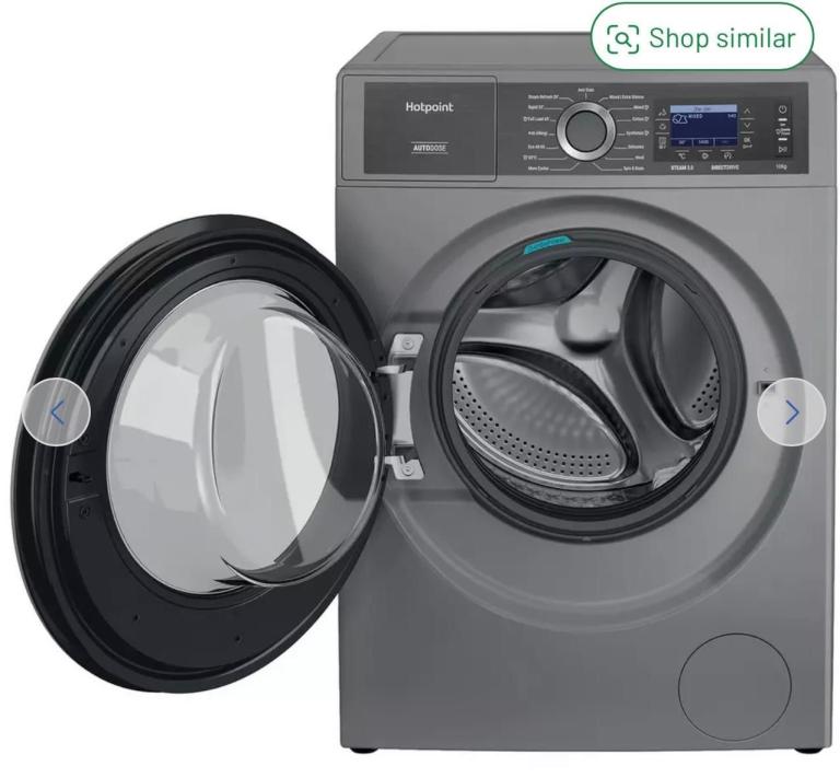 Achieve exceptional cleaning with maximum energy and water efficiency using the Hotpoint GentlePowerr H809ADS GPOWERUK washing machine in silver. With a 10kg capacity and a 1400rpm spin speed, it's ideal for large households. Gentle Power technology sprays a mix of water and detergent onto laundry, ensuring a thorough wash while minimizing resource usage.