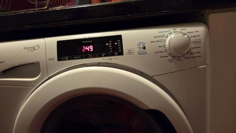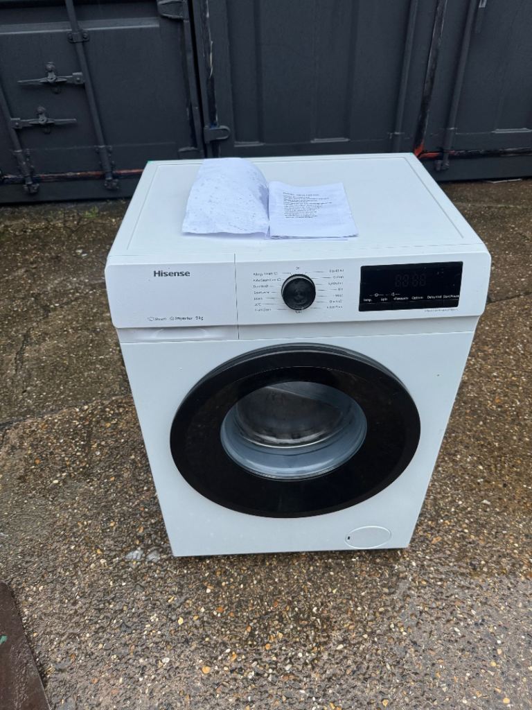 Here we have a machine needing a new home. It's has wear and tear and a few dings , 1 on the front and 1 on the left side which won't be seen. Still runs really well. Adjustable tempature and speed. Many cycles which can be seen on the photos. Machine only need filled from cold water.