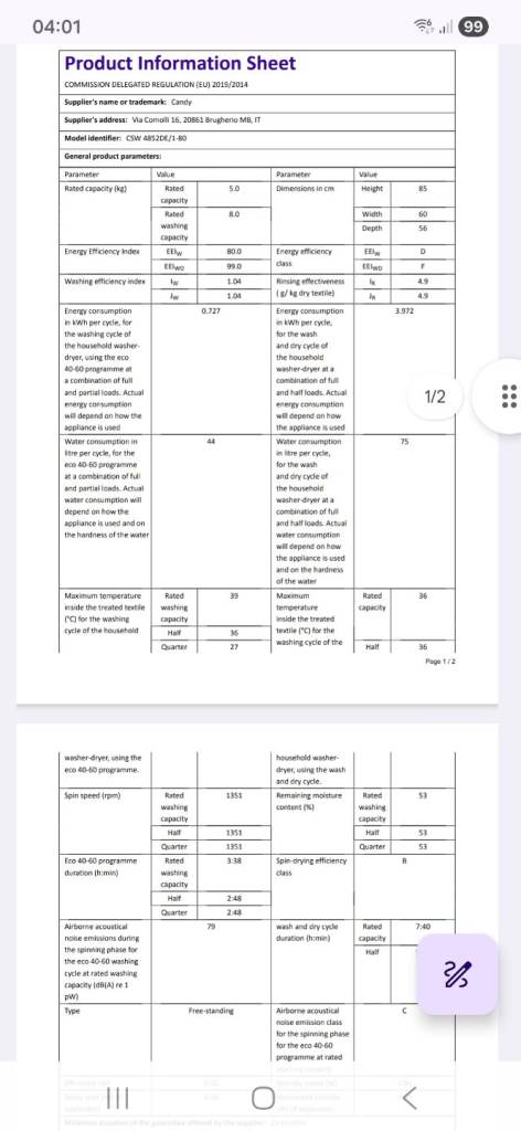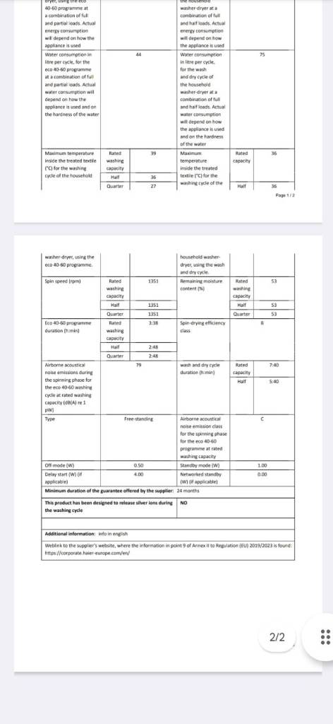 Washing load cap 8kg