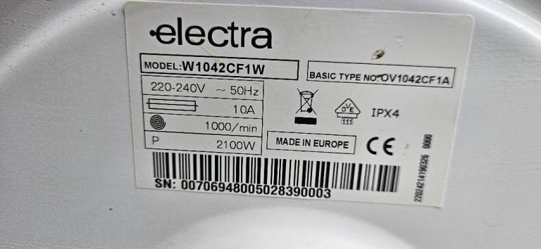Electra W1042CF1W Washing Machine – Good Condition, Safety Tested