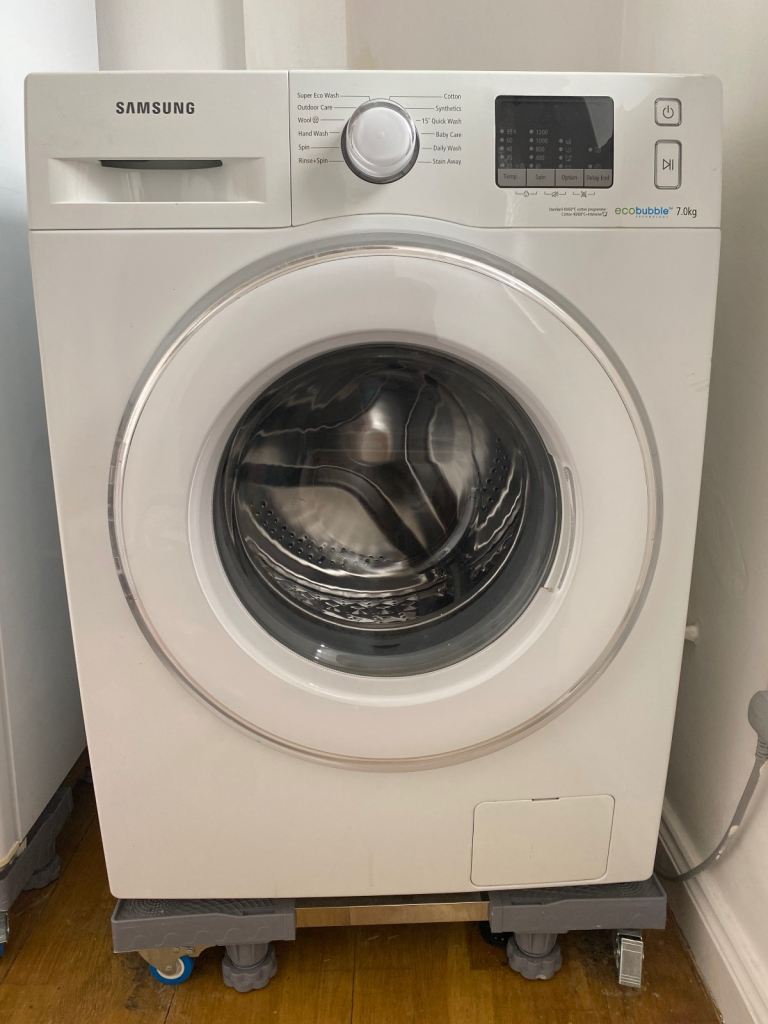 The Samsung Added Wash Washing Machine in immaculate condition and is a high-efficiency, front-loading appliance with a capacity of 8 kg. This model, the Samsung Eco Bubble, features a Wi-Fi connection for SmartThings compatibility, making it easy to control remotely. With an energy efficiency rating of A, this white washing machine also includes a child lock feature and operates with a noise level of 71-80 dB. Perfect for those looking for a reliable and energy-efficient washer for their home.