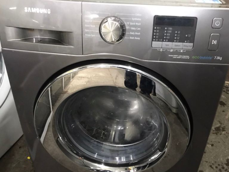 Automatic washer samsung eco bubble 7kg load size, graphite grey large chrome door. digital controls. excellent machine in perfect working order. possible local delivery and demonstrate 95 pounds.