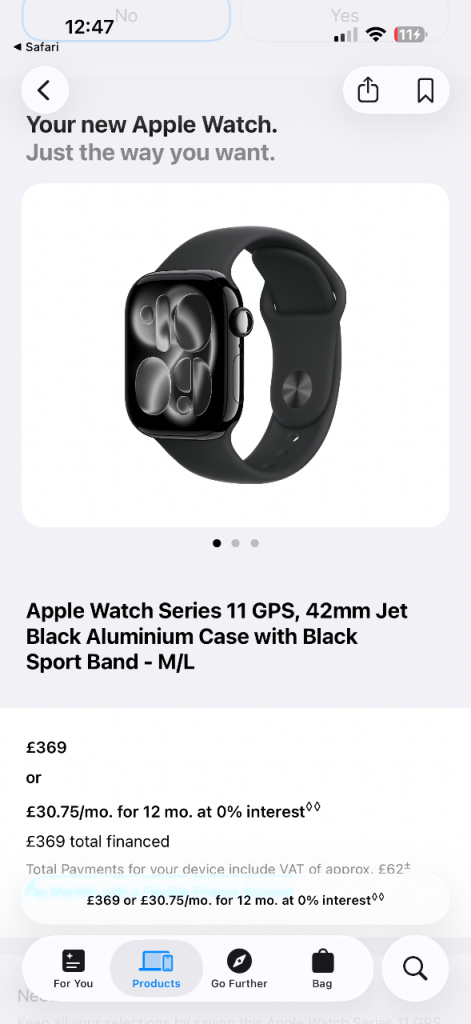 Brand new unopened Apple Watch Series 11 GPS with a 42mm Jet Black Aluminium Case.