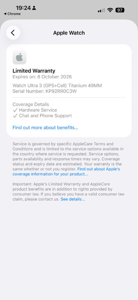 The warranty is all the way until October 2026 and easily transferable as per Apples rules (whoever’s iCloud it’s connected to).