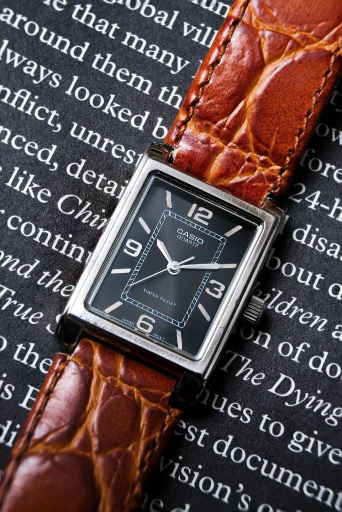 Casio Tank-Style Quartz Watch – Upgraded 18 mm Crocodile Leather Strap