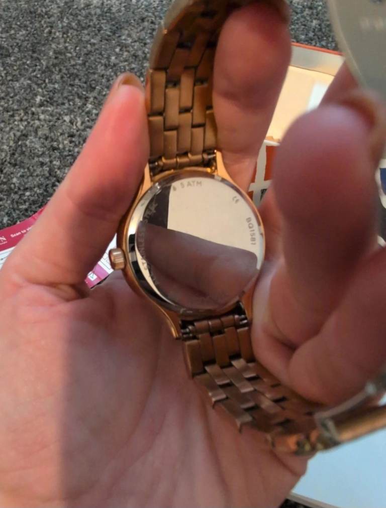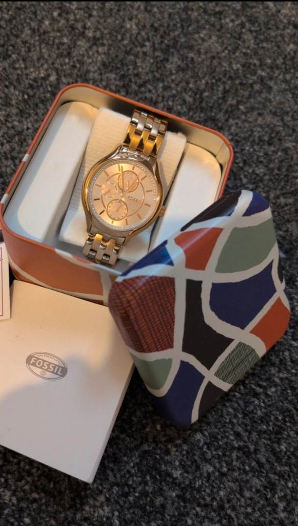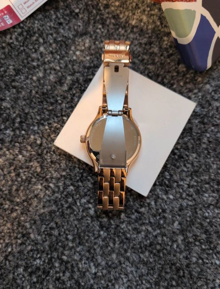 The Fossil 40mm Daydreamer Multifunction Crystals Rose Gold Women's Watch BQ1581 is a stylish and elegant timepiece designed for women. This quartz movement watch features a beautiful rose gold case and band, with a water resistance of 50 meters. The watch comes in its original box and packaging, making it a perfect choice for special occasions or everyday wear. With features such as a date indicator, multifunction, and chronograph, this luxury dress/formal watch is a versatile accessory that exudes classic and timeless style.