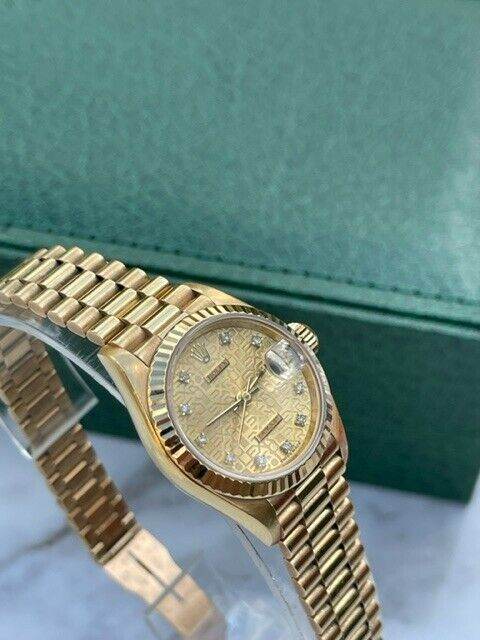 ******LADIES FULL GOLD DATEJUST 26MM ROLEX PAPERS, FACTORY JUBILEE DIAMOND DIAL , PRESIDENT BRACELET , FLUTED BEZEL, WE HAVE A FEW OF THESE, COMES WITH BOX PAPERS RECEIPTS, VALUATION WARRANTY, PX POSSIBLE , FINANCE AVAILABLE