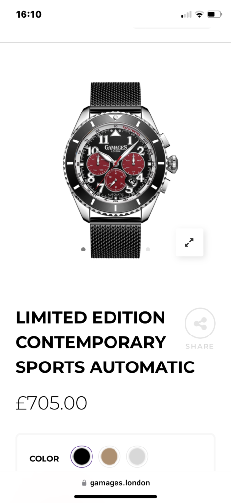 Gamages of London Contemporary sorts watch in black.