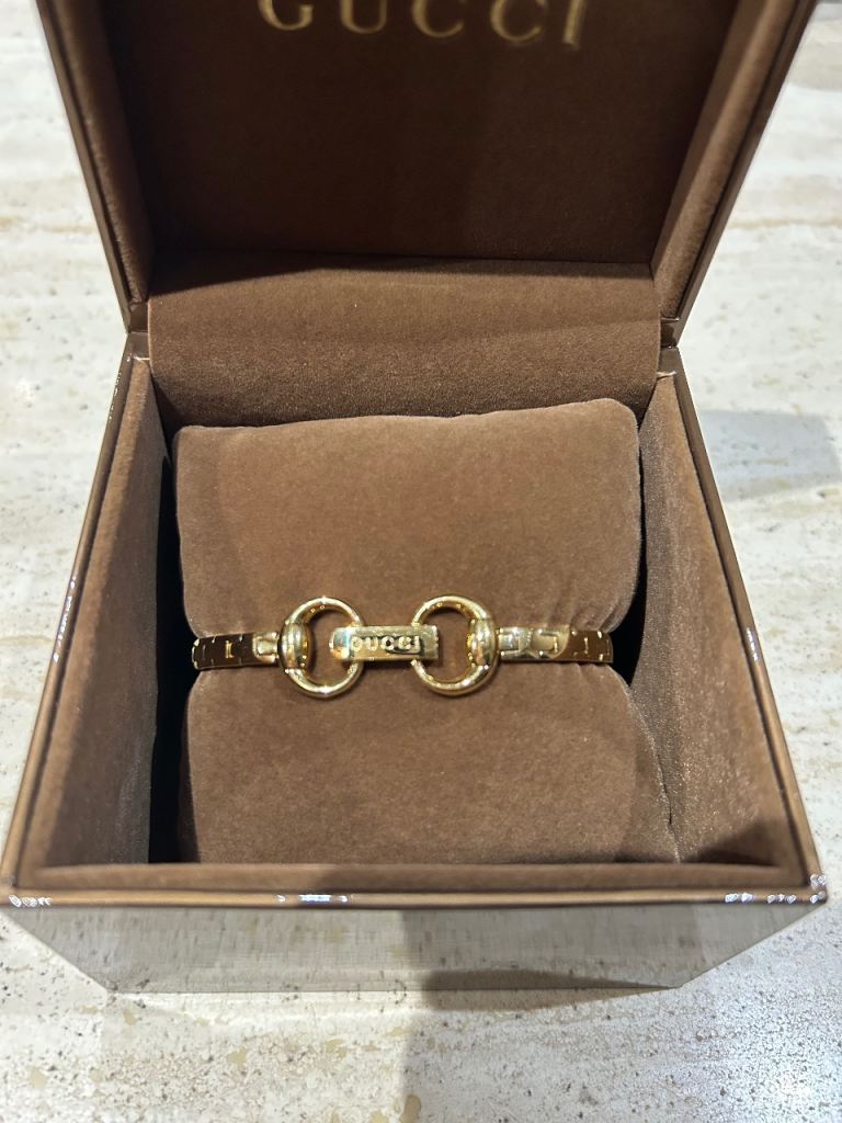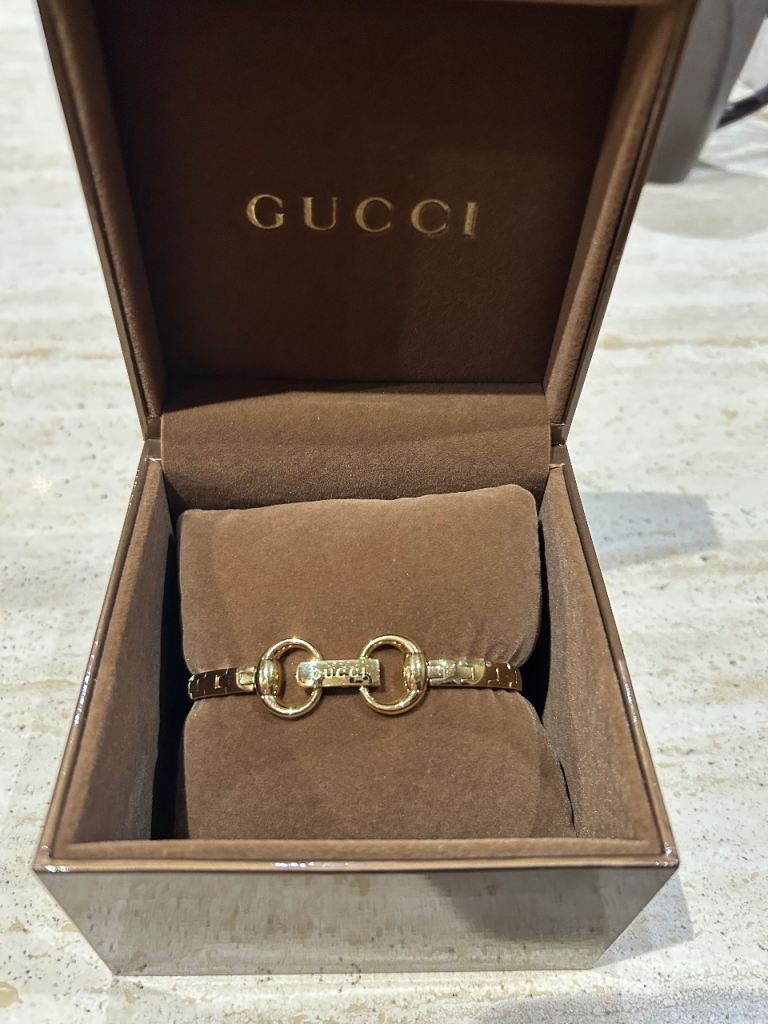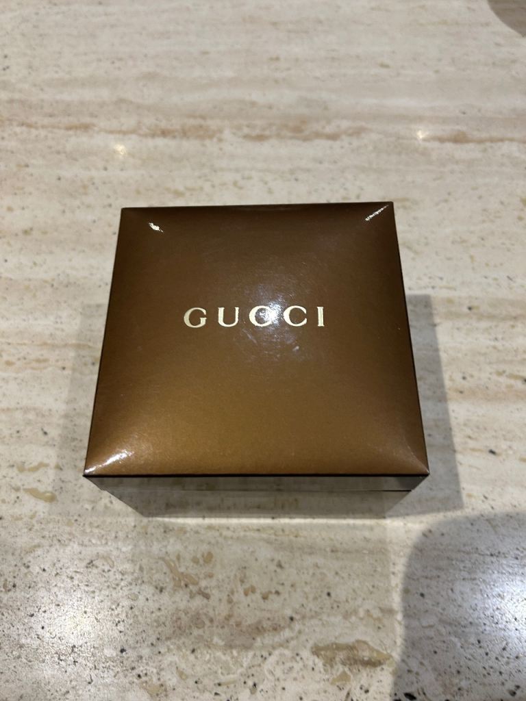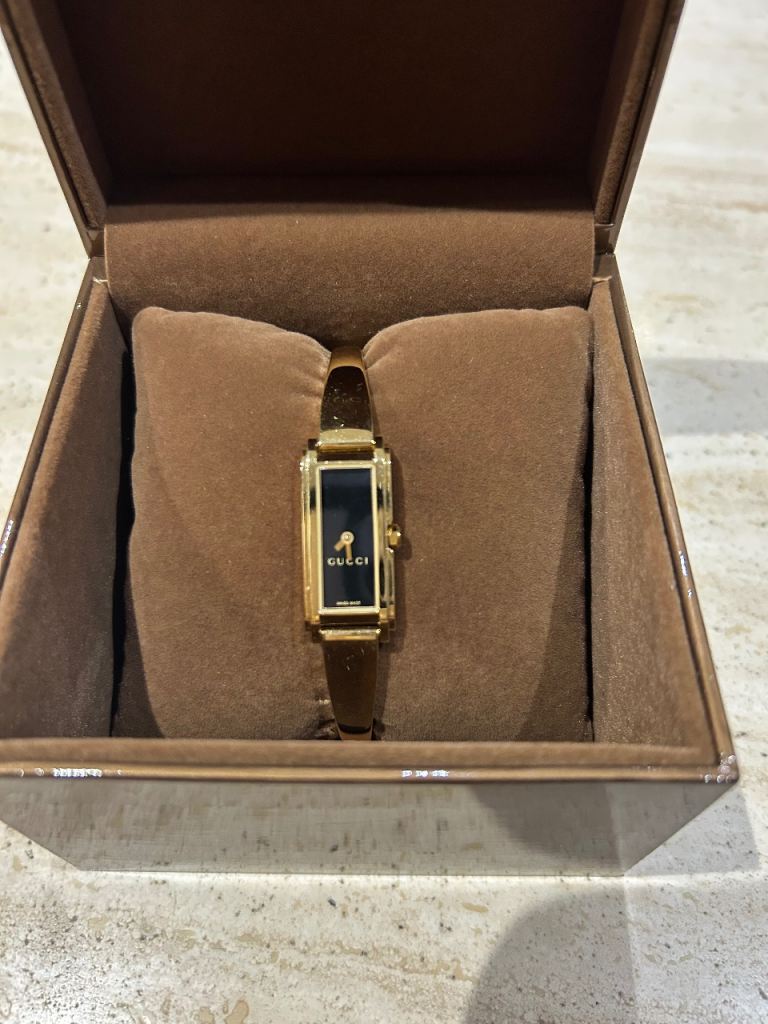 Beautiful Gucci watch, bracelet style. Black rectangle face.