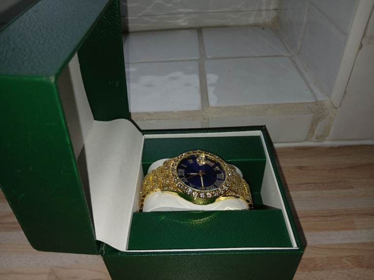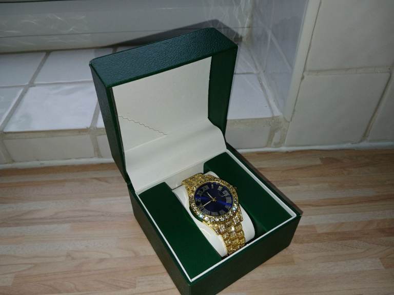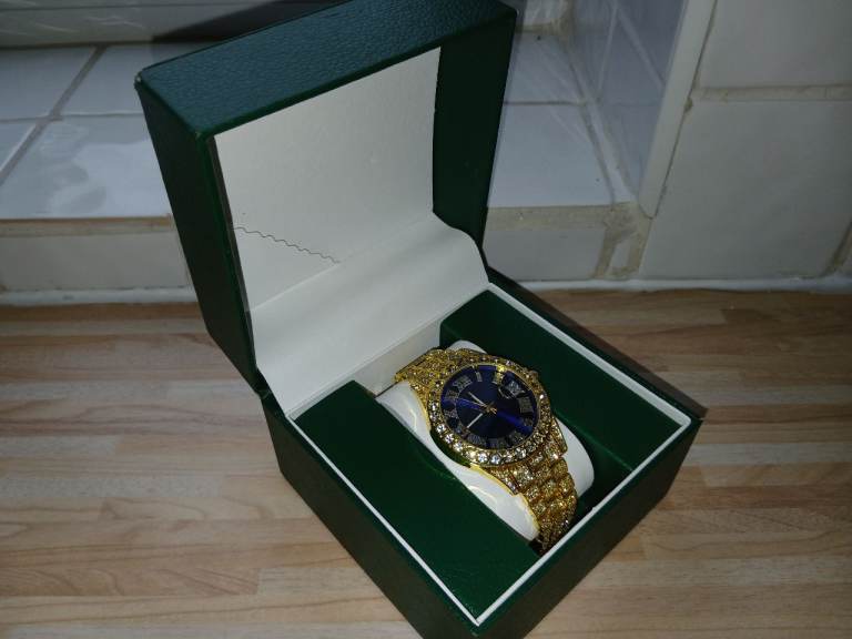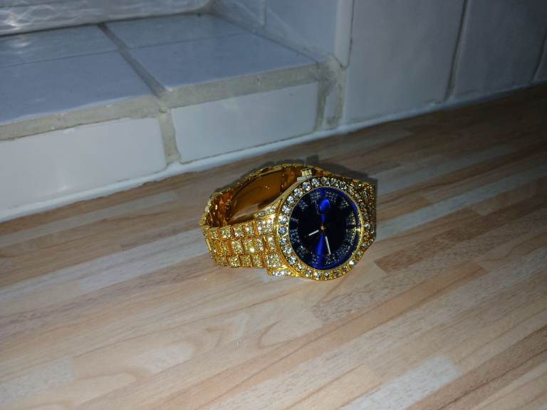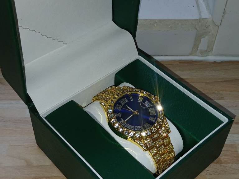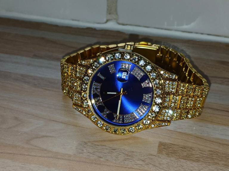Iced Out Blue Dial Watch