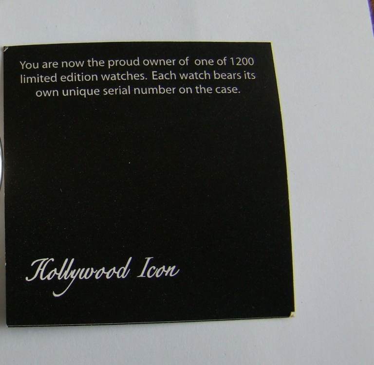 The value of the John Wayne "Hollywood Icon" limited edition pocket watch can be estimated by looking at similar collectible pocket watches, especially those related to movie icons, on online marketplaces. Limited Edition:The image indicates the watch is one of 272/1200 limited edition watches, which can increase its value to collectors. Serial Number: Each watch has a unique serial number, further enhancing its collect-ability