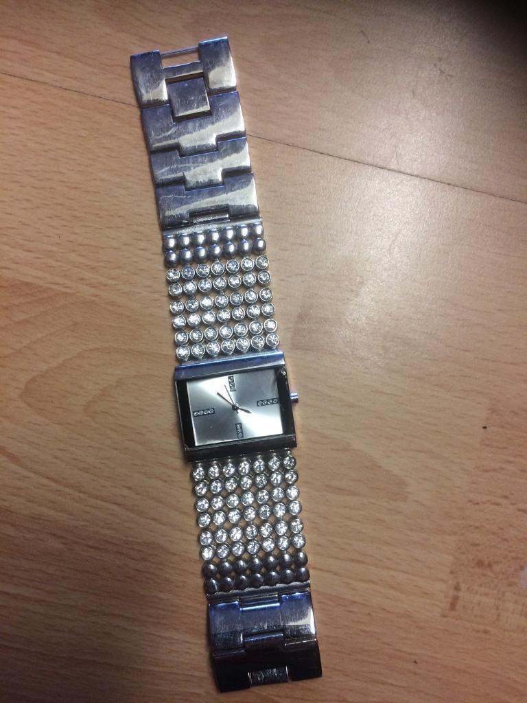 Beautiful watch with diamanté’s strap, glass is slightly cracked on right side but not noticed when wearing, Unwanted gift, sold as seen! Reduced price