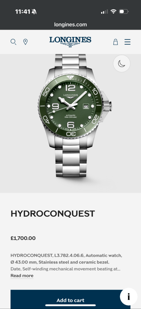 This is the ceramic bezel version and is £1700.00 on Longines website. Very comfortable watch and comes with extra links.