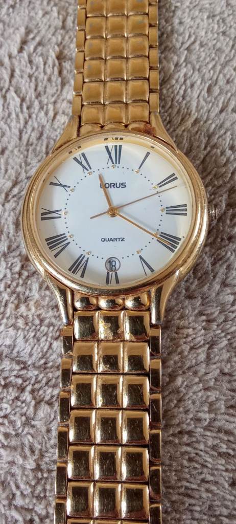 Vintage lorus watch with Seiko movement in good condition and working order. The crown is slightly wobbly when pulled out to adjust time and date but all ok when pushed in. Case width is 32mm.