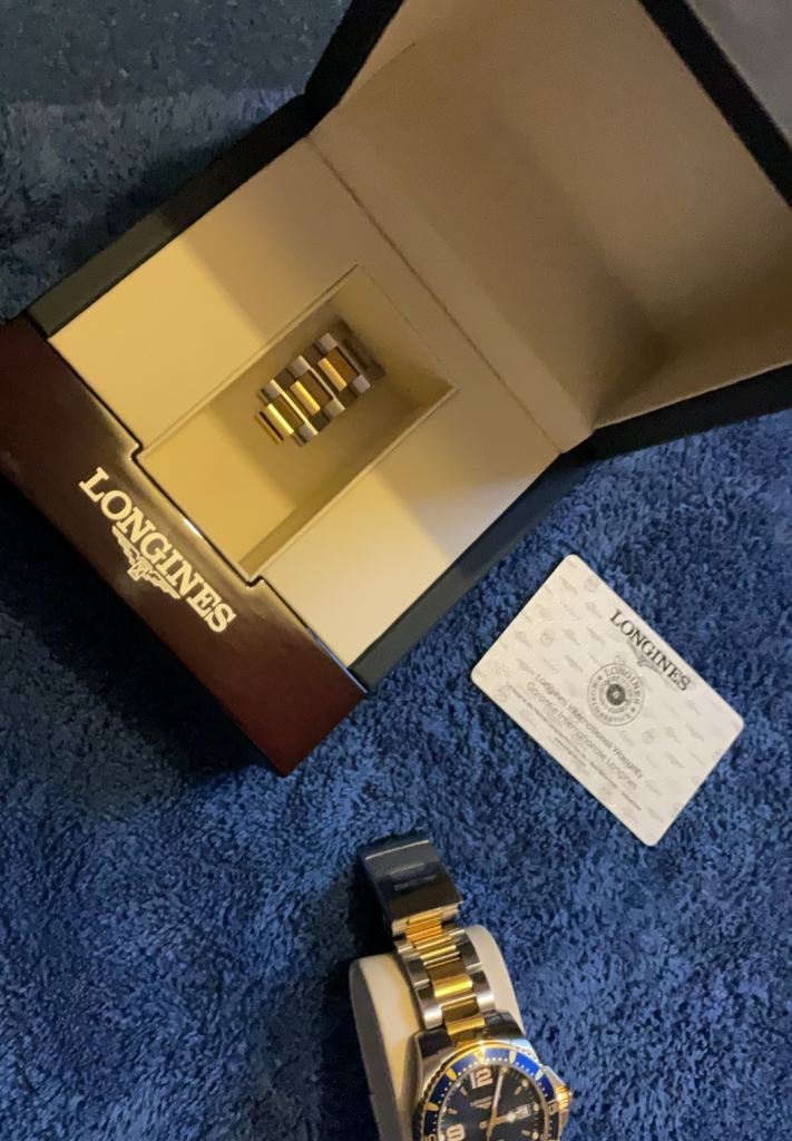 Men’s automatic longhines watch absolutely immaculate condition been sat in a watch winder got all the paperwork and book extra links original box and holder,I just never use it so time to get rid the condition is as new with no scratches or marks.got the original receipt.£500.
