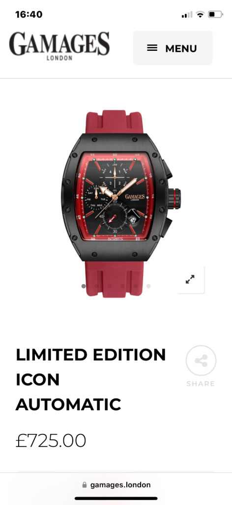 The stainless steel caseback is engraved with the Gamages Of London logo, and its red silicone strap is distinct from the Black IP contemporary black case, and conjures up ideas of the passion that McCartney, and his back catalogue, still inspire today.