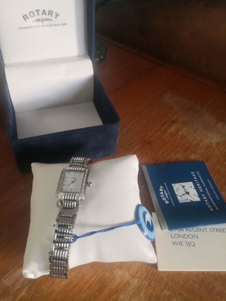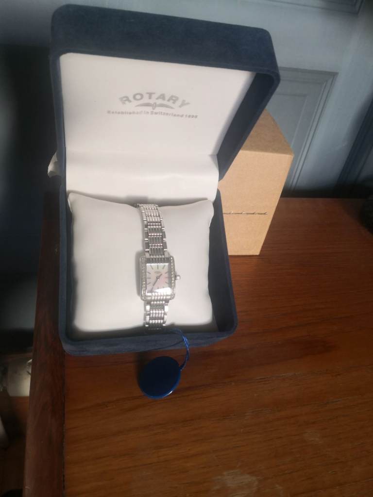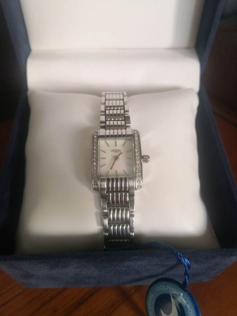 New stunning ladies women's Rotary watch with mother of pearl face silver bracelet strap BNIB