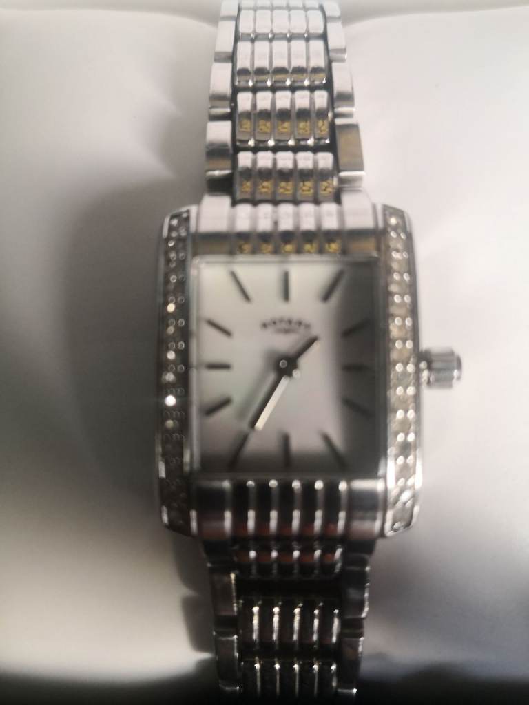 Beautiful watch brand new in box, silver bracelet strap, mother of pearl white face swarovski crystal. Unwanted gift, I got it for my birthday but I wear men's watches! I've set it and the battery is good. Rrp £180?