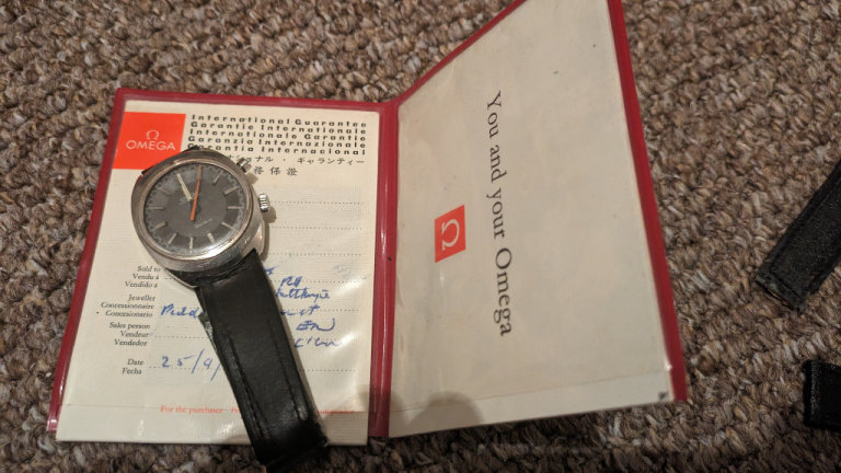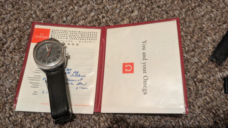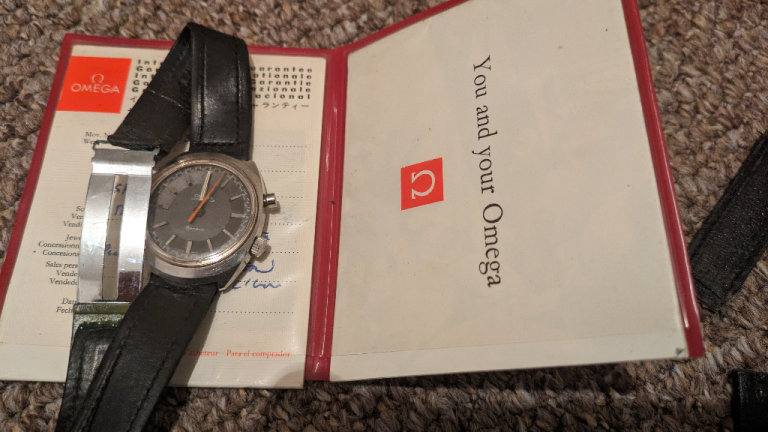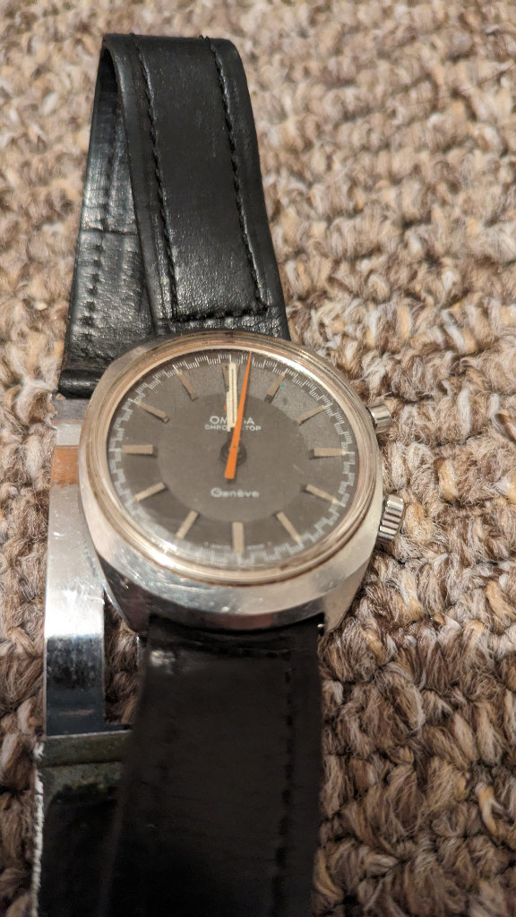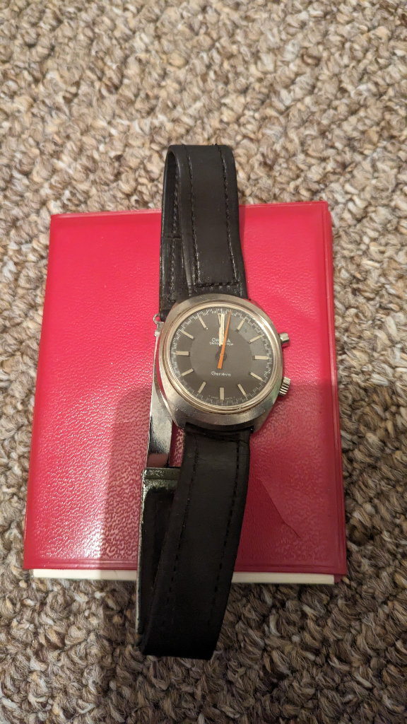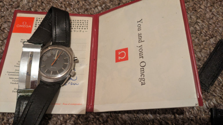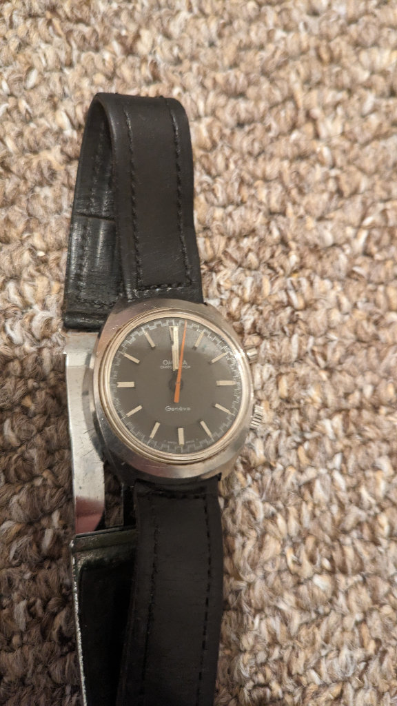 Omega chronostop geneve with mother of pearl inlay and full paperwork