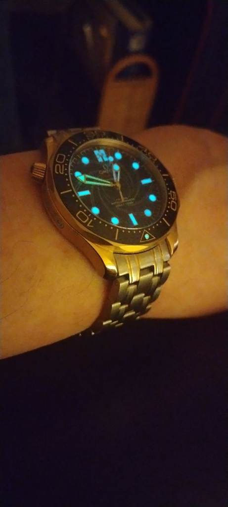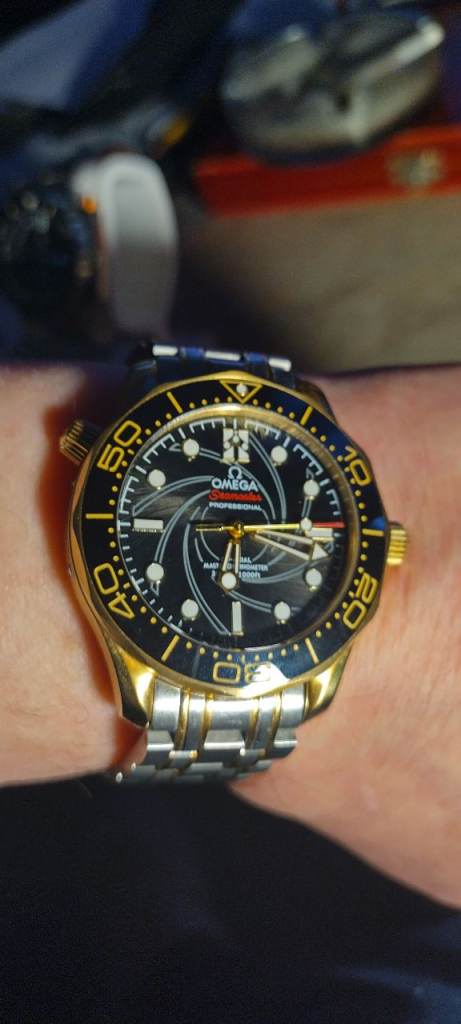 Just as it says on the title absolutely stunning watch never skip's a beat Will come with window display stand and spare omega rubber strap, and a watch winder for two watches, this doesn't come with the box in the photos, I've sold that thanks the lume on this watch is amazing very bright aqua blue