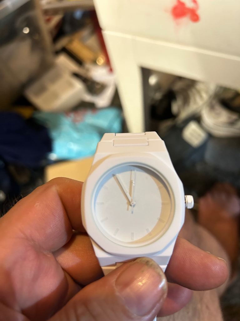 Color: The entire watch, including the case, dial, and bracelet, is a solid matte white.