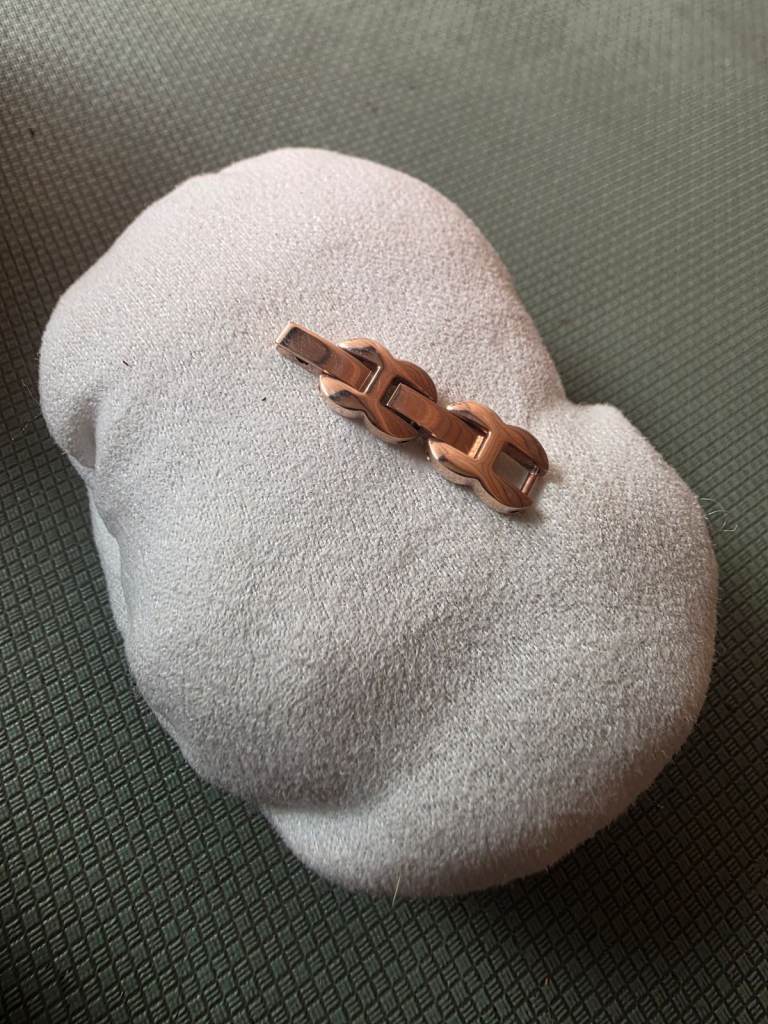 It comes with additional links, storage case and cushion aswel as the exterior box.