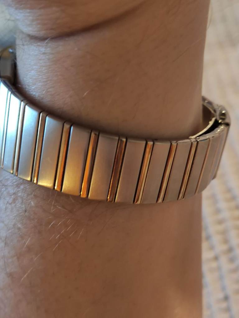 28mm case. Extra link. Will fit max medium or a bit bigger than medium wrist.