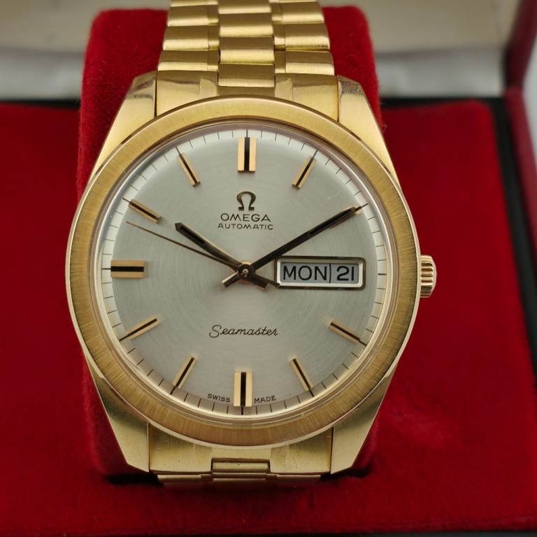Rare Omega Seamaster 166.032 – 18K Gold, Onyx Dial, Cal. 752, 1098 Bracelet – Exceptional Example
