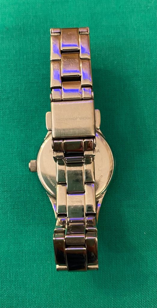 I received this watch as a birthday gift. It has spent most of the last 14 years sitting in it’s box. I’ve worn it maybe a handful of times as I rarely have occasion to put it on. I came across it recently and decided it’s too lovely to sit in a box when someone else could enjoy wearing it. The battery has been replaced and the watch functions perfectly. There are some barely visible scratches on the casing, otherwise it is in almost immaculate condition.