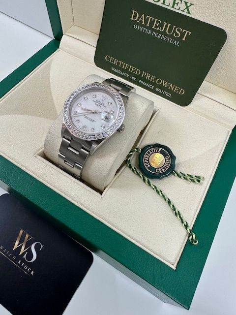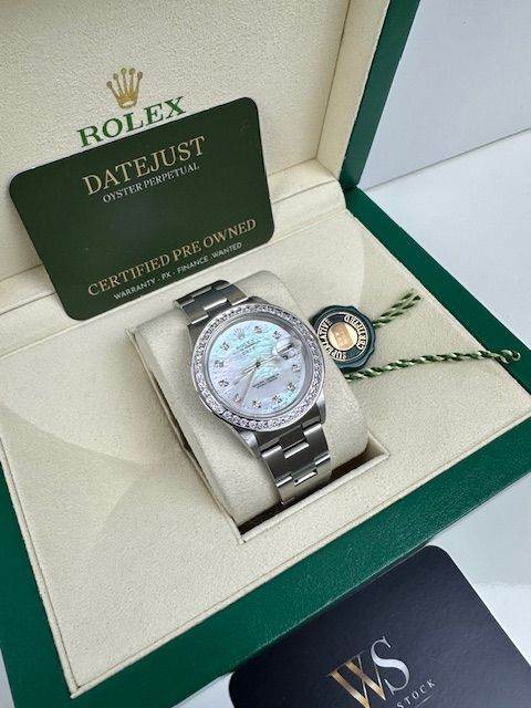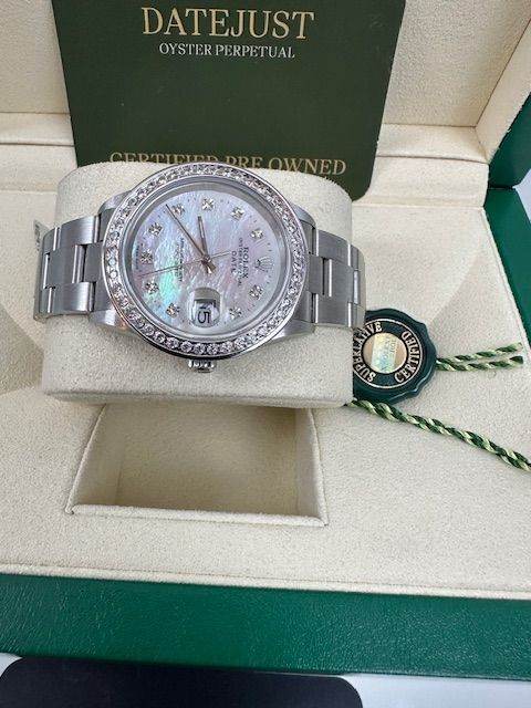 ROLEX OYSTER PERPETUAL DATE , QUITE RARE 34MM 2005 , STUNNING MOTHER OF PEARL DIAL WITH A OYSTER BRACELET, COMES WITH BOX NATIONAL CERTIFICATES ,BOOKLETS,WARRANTY ETC