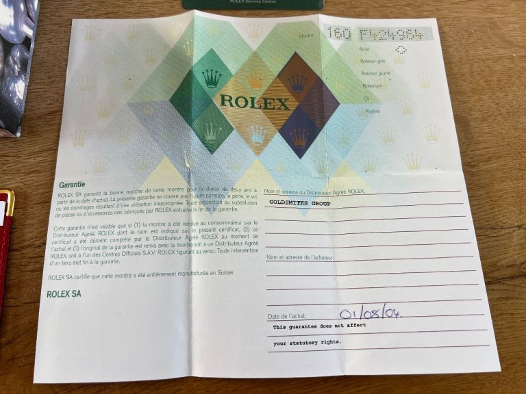 The watch was serviced at Rolex in 2012 ( with certificate ) and since with a local Horologist that looks after and services all our watches, last serviced in 2021.
