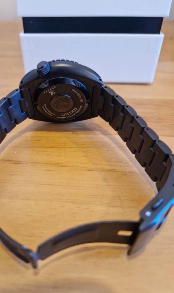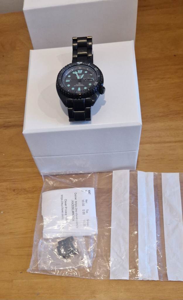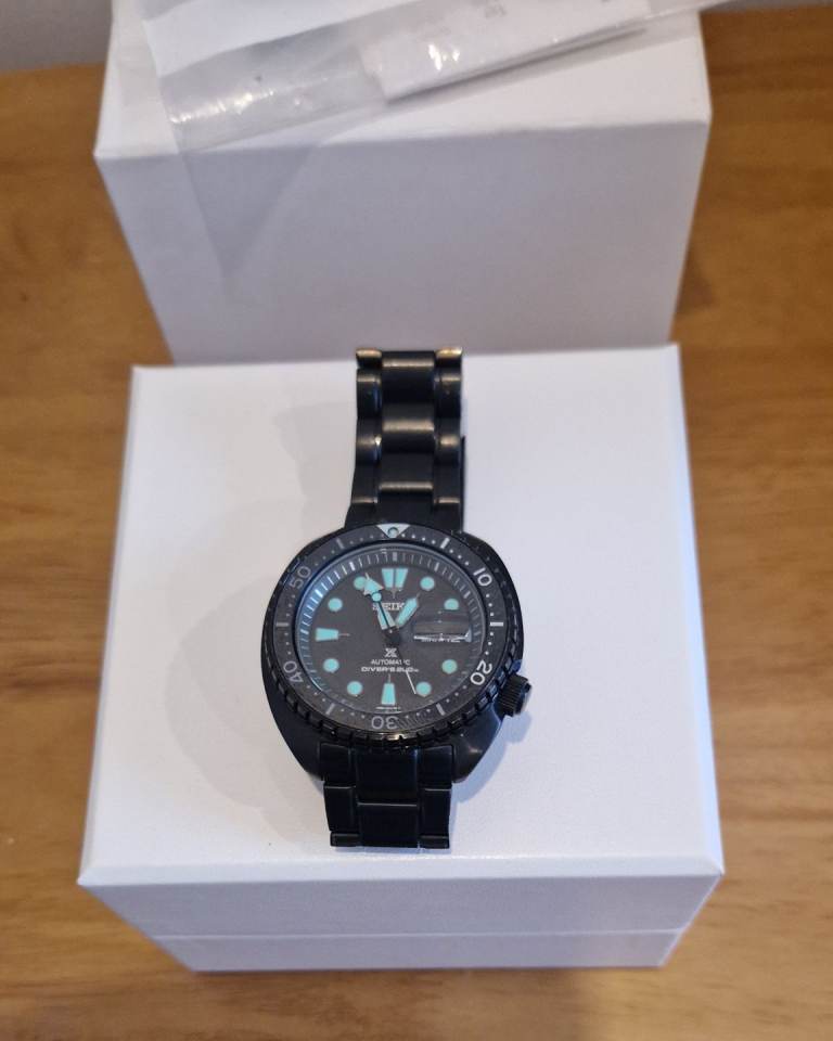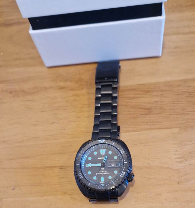 only worn for 1 day and put back in box so it is as new! its a nice heavy divers watch this is the king turtle black edition and is a bargain for the price.