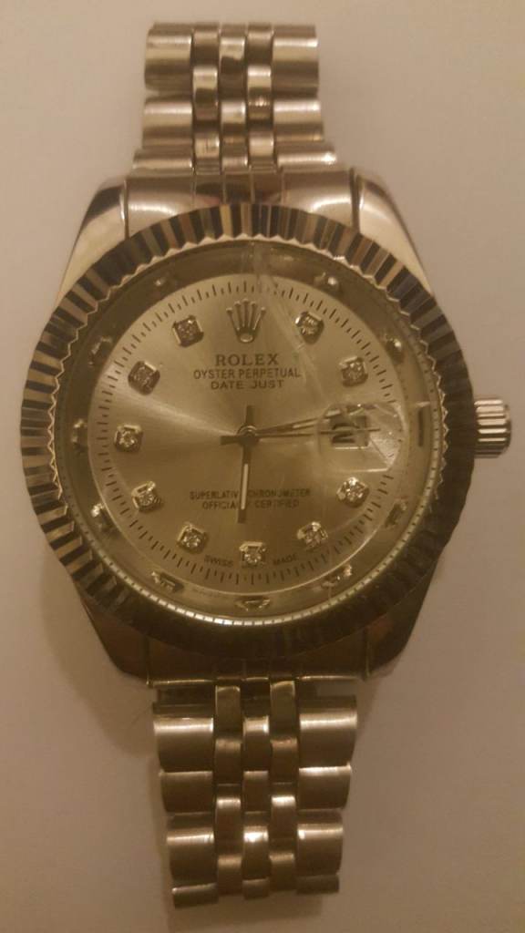 Case Material: Silver-tone polished alloy with a stainless steel case back