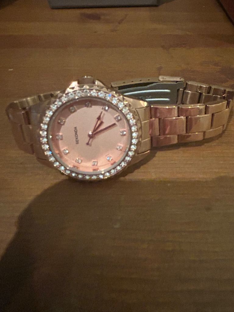 Sekonda Temptations 4253 ladies' watch with a rose gold ion-plated stainless steel bracelet, a rose dial, and a crystal-set bezel and hour markers