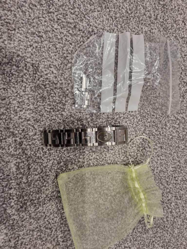 Bought secondhand and had cleaned but too heavy for my wrist so looking to sell on. Comes with spare links and pins to change strap size