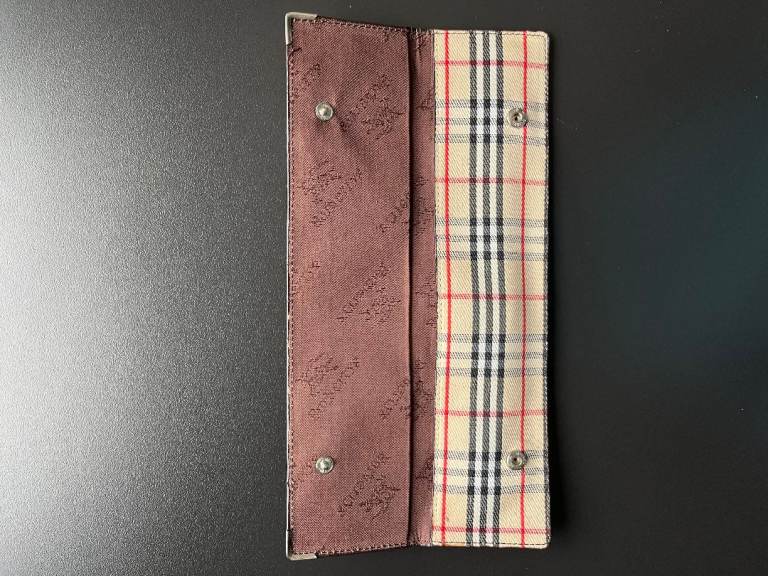 Authentic vintage Burberry wrist watch with matching leather case. Stainless steel and Swiss made. Still has the factory sticker covering both the watch dial and the back of the watch. Original Burberry tag also still attached to watch. Has a water resistance of 3 ATM. Leather strap has some minor marks on the inside (visible in photos). Roman numerals on the face of the watch.