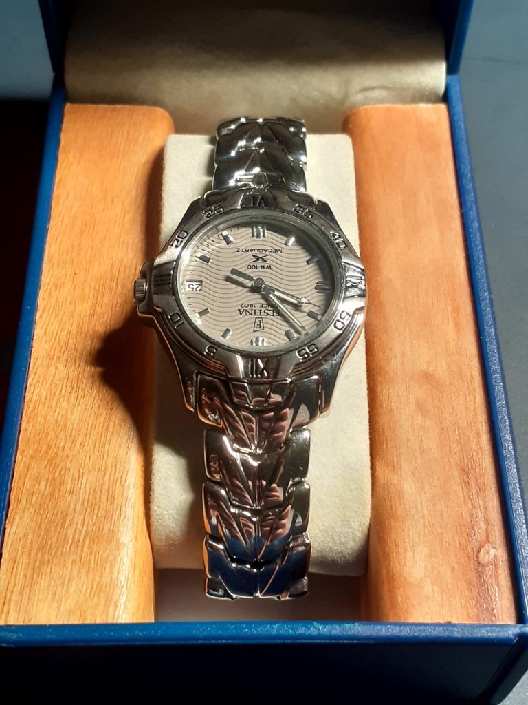 This is a classic Festina Mecaquartz 6541 Women's Watch. Contained within its original box and displayed in excellent condition, this is a product that's barely been used and kept preserved in its original condition. Stainless steel and water resistant with no damage or faults present. 10 ATM. Priced slightly lower to accommodate for shipping costs if necessary. Contact if you need more details or photos of the product.