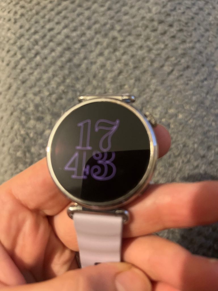 Brand new watch, selling because I made a mistake with the color and couldn't return it. The charger holds a charge for about a day. Original packaging, charger, receipt, everything included
