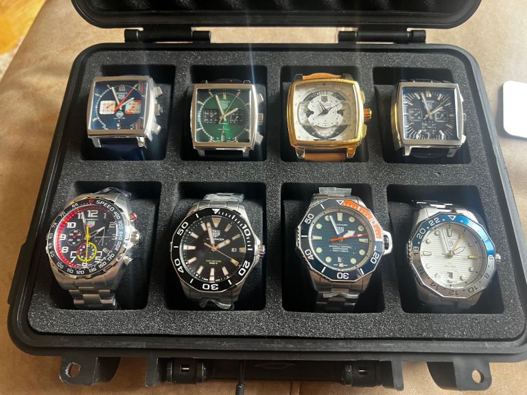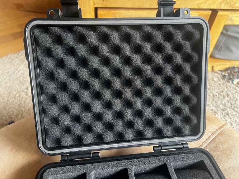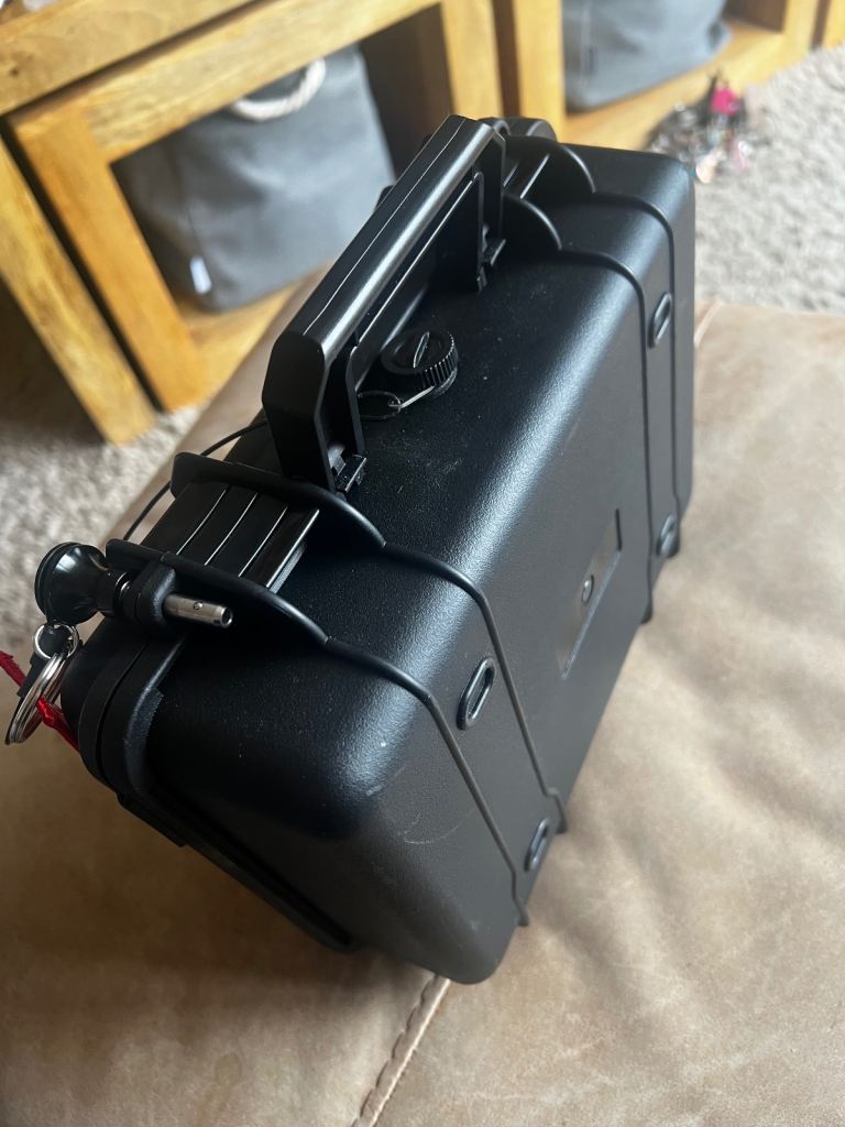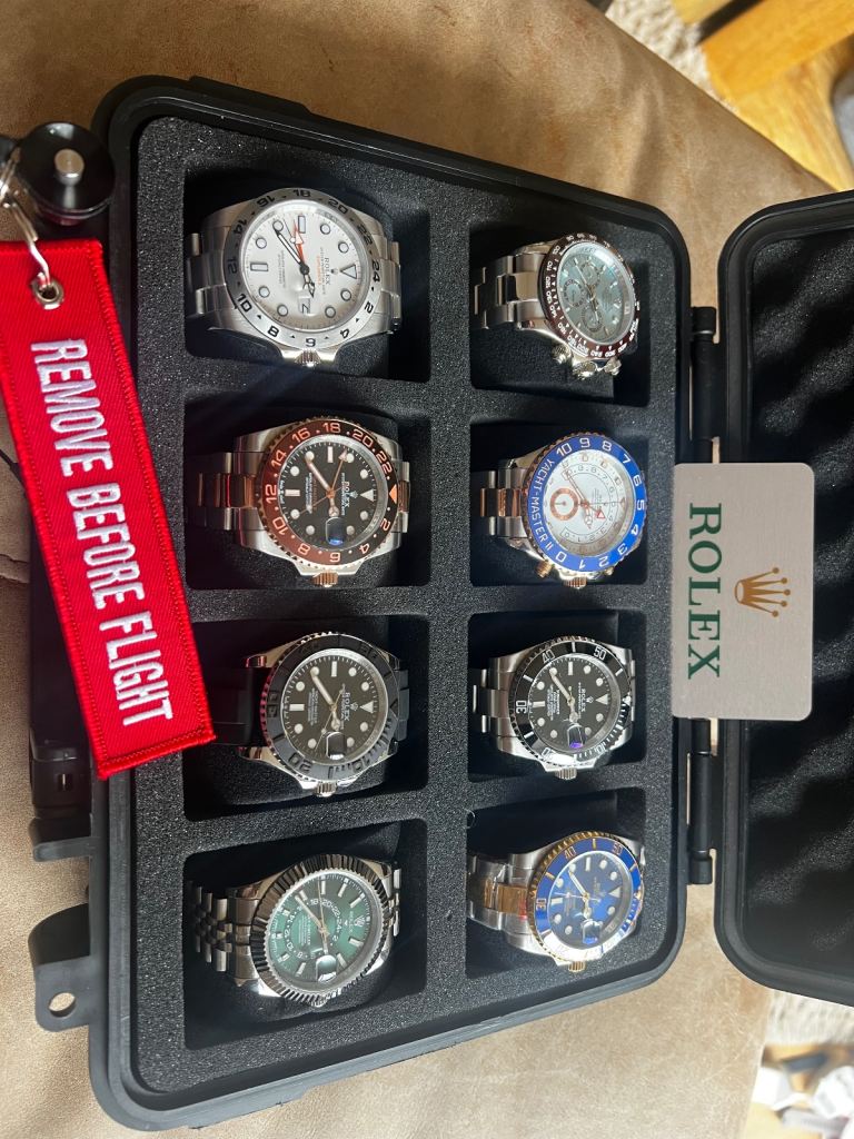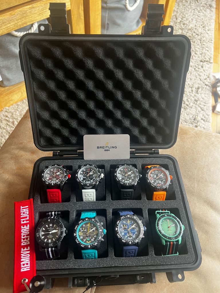 8 slot watch carry case, perfect for secure, waterproof, travel. The carry case is rugged & secure & waterproof to IP67 commercial standards. Comes with foldable case handle, Remove Befire Flight, ball & pin security tag. Steel cord fastening to the case so it’ll never get lost. Foam insert preset cut & set ready for 8 watches.