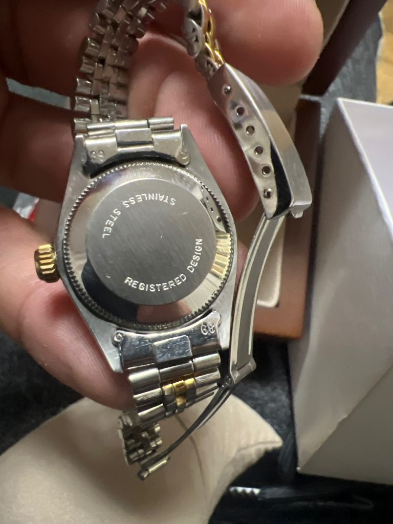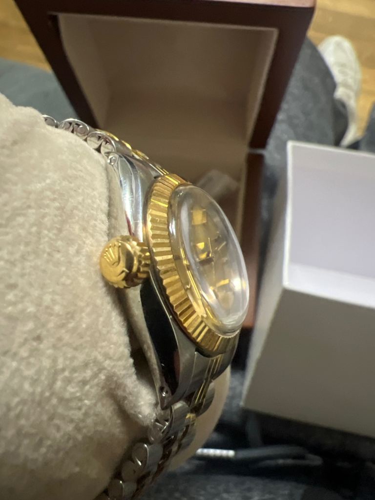 Beautiful 26mm ladies Rolex for sale. I purchased about a year and a half ago for my partner and she doesn’t wear it at all so instead of collecting dust, someone else can enjoy it. It doesn’t come in a Rolex box and doesn’t have the papers. The clasp of the watch is also of a tag watch I believe ( but you would never notice it) This watch I believe retails anywhere between £2,500 - £7000. I’m letting it go for £1800 because of the reasons above. This will make a beautiful watch for someone who will wear it and at a steal of a price. It’s been authenticated by local jewellers also and wouldn’t mind meeting at a jewellers to confirm this for anyone with any doubts as there are a lot of fakes that go around. This is the real deal and at a great price. It’s in perfect condition also with no visible wear signs. I’m just looking for a quick sale for this beautiful watch hence the price. Send me a message if you have any questions, thanks