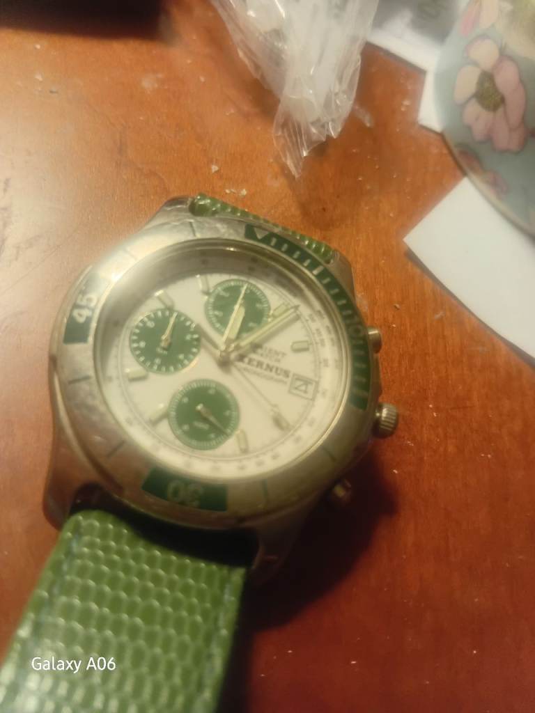 Few scratches on face naturally. Waterproof green leather quality strap as pic.