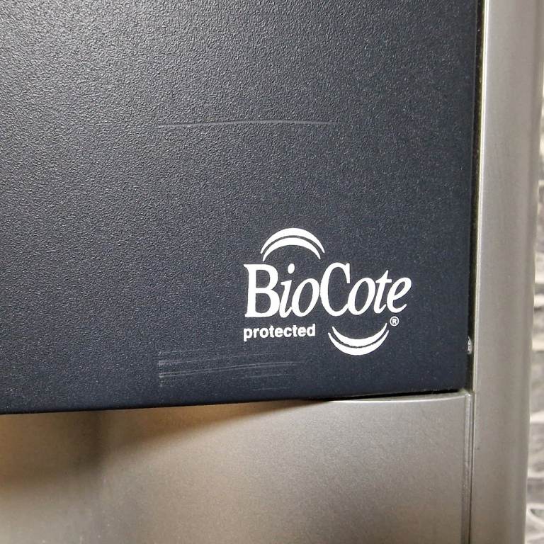 Features BioCote antimicrobial protection and durable metal and plastic construction. Clean and professional appearance with only minor cosmetic marks from normal use, as shown in the photos. Includes pipe attachments and connectors ready for installation.