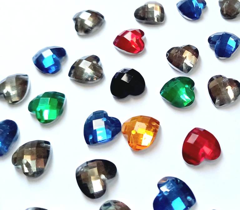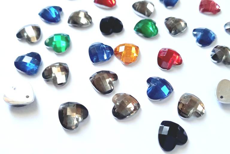 High quality faceted acrylic heart gems for art abd craft projects.