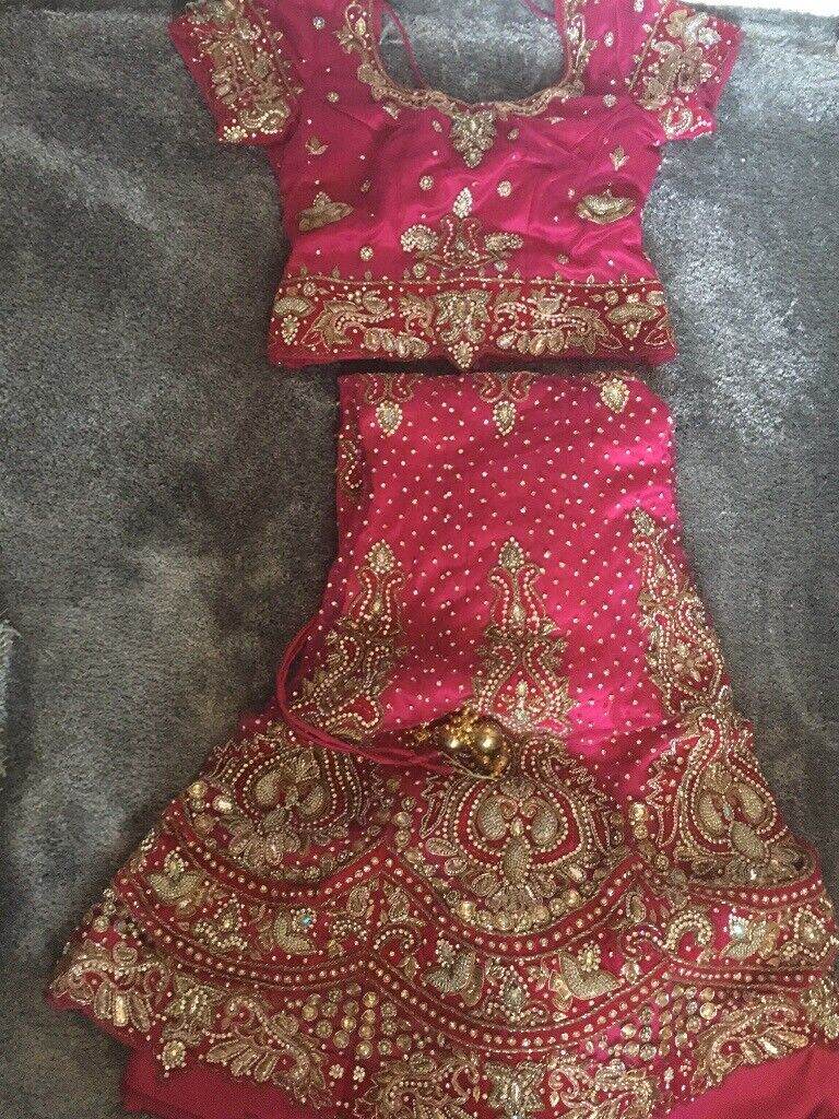beautiful diamanté lengha set for sale. lovely pink and gold colours