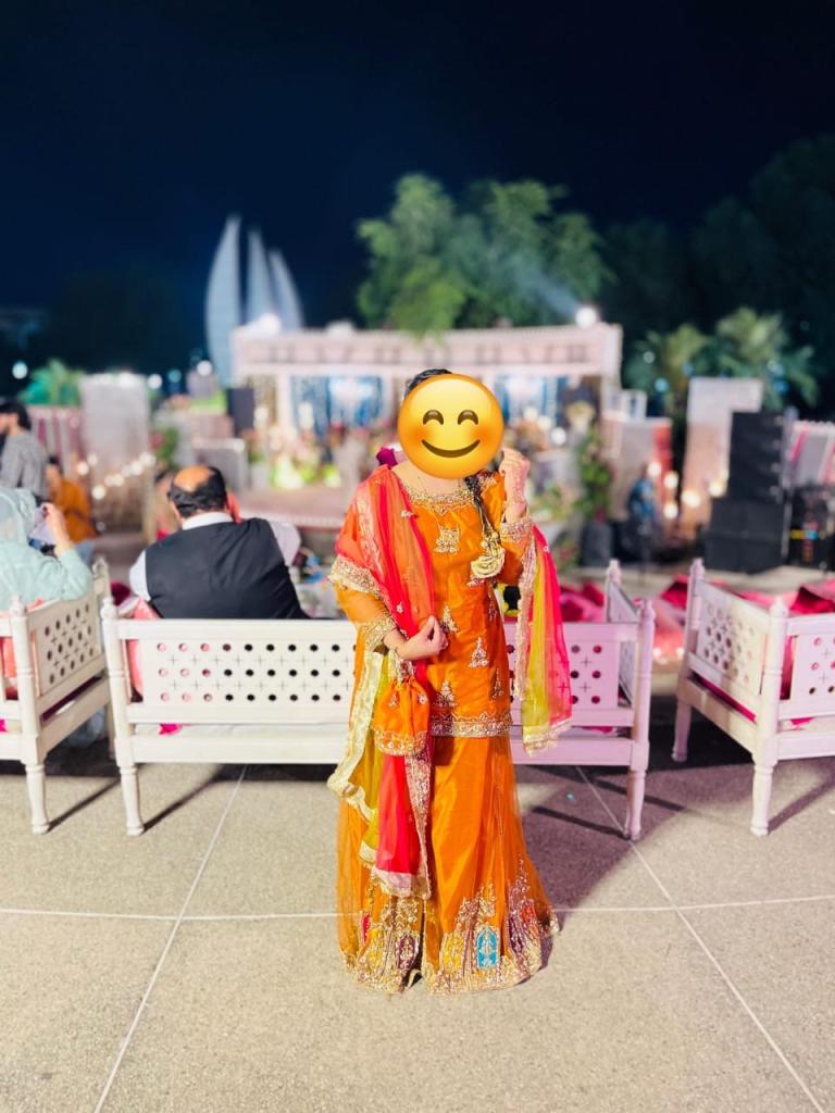 detailed sequin and stones on dupatta and head piece as shown in picture